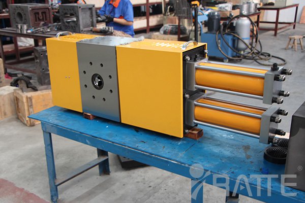 (3)普通換網器都是濾網(多孔板)載體直接與塑料熔體接觸,由于換網需要來回移動磨擦,這中間極易產生黑點雜質,濾網清潔的再干凈也無效,因為不能直接清潔載體。而專用換網器就不一樣:濾網(多孔板)和載體成一個整體變成一個網塊,而且讓它循環使用單向移動,避免了黑點雜質的產生,加之換網后又可一起拿下清理,干凈的網塊再裝上新濾網絕無黑點雜質。(4)PET的流動性極好,為保持該換網器機械剛性密封的穩定性,其所用的鋼材比一般換網器的要耐磨耐熱,流道也更光滑。