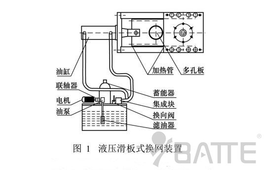 液壓滑板式連續(xù)換網(wǎng)裝置,它通過液壓缸活塞的推力,將裝有兩個分流過濾網(wǎng)孔的滑板往復(fù)移動,臟網(wǎng)推出更換,新網(wǎng)安裝后推進,實現(xiàn)瞬間快速換網(wǎng)。該換網(wǎng)裝置結(jié)構(gòu)緊湊,操作方便快捷,在不停機狀態(tài)下?lián)Q網(wǎng)工作在1-2s內(nèi)就可完成。實現(xiàn)不停機換網(wǎng),可避免因換網(wǎng)而造成的生產(chǎn)停頓、原材料與能源損失,有利于節(jié)約成本,在塑料擠出生產(chǎn)線上使用較多。但液壓滑板式器的換網(wǎng)裝置在結(jié)構(gòu)上存在著一個較大缺陷。